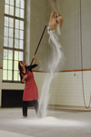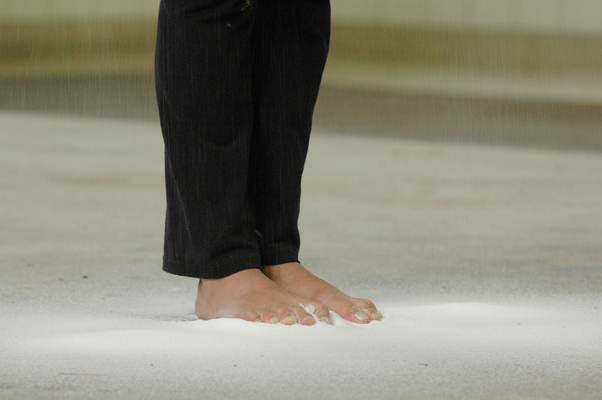 Sie lässt die rieselnde Masse in ihren Mund fließen, bis ein „Zuviel“ an Süße sie würgen lässt. Zusätzlich bildet der rinnende Zucker vulkanartige Kegel am Boden. Ihr Würgen entzaubert die erste eindrückliche Schönheit: Etwas ist nicht in Ordnung.