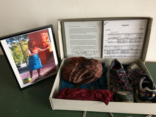 «Pascale Grau beginnt zu sprechen: Erzählt von einem Foto, von einer Landschaft, einem Ort, der verlassen wurde und unwichtig mit der Zeit, von einer Landschaft die unausgeschlafen ist, Moos und Flechten schauen, Sumpfgras, Tiere, tiefer Schnee, ein ausgetrockneter Ort aus uralter Zeit. Sie erzählt von Erdschichten, von Sumpf, von einer Quelle die versiegt, von einer Herde Schafe, die sich um den Ort gekümmert haben, sie haben die Angst abgeleckt. Es ist still dort und schattig, Schafswolken, wieder das Moos und die Flechten und Leben. Die Performerin legt den Zettel auf die Melone. Sie beginnt wieder zu singen. Dasselbe Lied, eine neue Strophe. Youkali... Hat sie den Ort gefunden? Ist es ein Sehnsuchtsort oder ein „Nie mehr hin wollen Ort“? Oder liegt er in diesem Dazwischen? » (Judith Huber 2014)