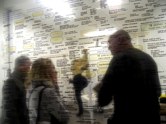 Le diagramme "Contexte dans l'art de la performance", développé avec Gerhard Dirmoser, permet de raconter de nombreuses histoires dans l'histoire de l'art de la performance. Des contes les plus abstrus aux réflexions hautement philosophiques. (Texte d'annonce en français)