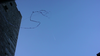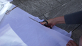 Taglio una grande bandiera bianca (150x300cm) con la scritta "éphémère" in strisce larghe circa 6cm che non sono completamente continue per 12 ore. La striscia tagliata rimane attaccata alla bandiera fino alla fine, si allunga a ogni taglio e si distende se c'è vento.