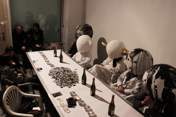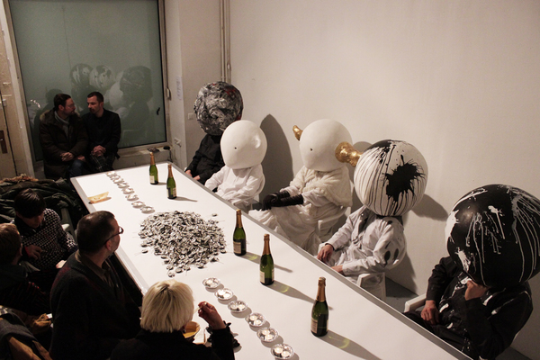 Après une phase d'irritation et de distanciation, le processus d'assimilation commence. Le public s'habitue à la présence des Big Heads, s'assoit à leur table, les touche ou mène un monologue à sens unique. La performance est un champ d'exploration du comportement humain face à l'étranger et à l'inconnu.