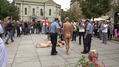 Lente marche nue des trois performeurs dans la Varsavska Street. Après environ 12 minutes, Elias Kirsche et Glynis Ackermann s'allongent sur le sol de Flower Square. Trois minutes plus tard, deux policiers font leur apparition sur la place. Alors qu'ils discutent avec les performeurs à terre, Thomas Zollinger s'approche et frôle leur corps, signe qu'ils doivent se lever. Les policiers s'écartent avant d'arrêter définitivement les performeurs qui continuent à avancer. Au bout de 20 minutes, Emil Matešić se présente comme le directeur artistique du festival, s'identifie et montre l'autorisation de l'événement, qui ne convainc pas. Les nus se rhabillent et sont conduits au poste de police, où ils doivent attendre deux heures. L'amende d'environ 300 euros est payée par les organisateurs du festival en vertu d'un article 14 (trouble à l'ordre public), comme convenu auparavant.