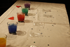 Ho iniziato con il primo bicchiere: Ho messo, all'interno del bicchiere, l'acquerello rotondo e poi l'aspirina.