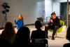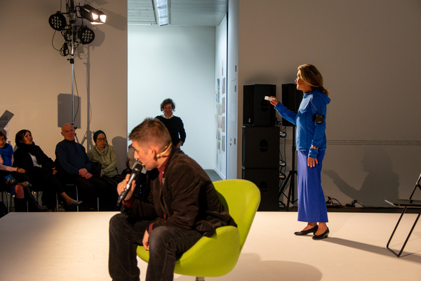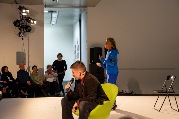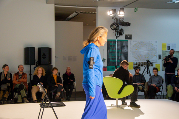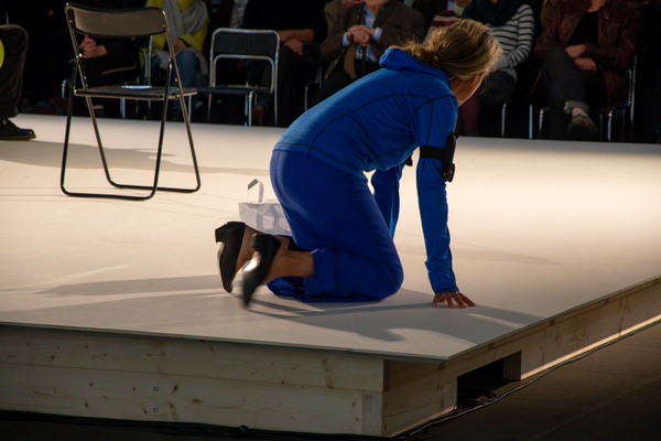 In Form einer Live-Gebrauchsanweisung stellt Claudia Grimm das dreiteilige Übungsset des Kollektivs DARTS (disappearing artists) vor. Die 9 Kunstschaffenden haben es zunächst für ihre eigenen Bedürfnisse entwickelt, für die „Anreicherung der Tage, der Kunst und der Körper“, wie sie sagen. Seit kurzem stellen sie es auch der Öffentlichkeit zur Verfügung. Der sogenannte Archifundus ist das Herzstück des Programms. Er besteht aus 3 kleinen Behältern. Darin wird, immer in Minimalformaten, „performables Material“ gesammelt. Das kann sich auf Kunst, kann sich aber auch auf den öffentlichen Raum, den Haushalt oder irgendeinen anderen Arbeitsplatz beziehen. Als Grundlage für das Übungsprogramm eignet sich der Archifundus deshalb, weil jeder Zugriff auf seinen Inhalt vom Nutzer, von der Nutzerin eine eigene aktuelle Verwendung des Materials verlangt. Die Vision des Kollektivs ist es, dass mittels des Archifundus und seiner Trainingseinheiten ein „performatives Gespinst entsteht, das alles einbezieht, was uns angeht“.