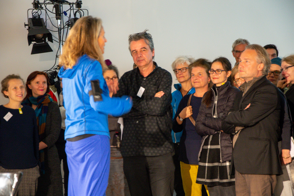 In Form einer Live-Gebrauchsanweisung stellt Claudia Grimm das dreiteilige Übungsset des Kollektivs DARTS (disappearing artists) vor. Die 9 Kunstschaffenden haben es zunächst für ihre eigenen Bedürfnisse entwickelt, für die „Anreicherung der Tage, der Kunst und der Körper“, wie sie sagen. Seit kurzem stellen sie es auch der Öffentlichkeit zur Verfügung. Der sogenannte Archifundus ist das Herzstück des Programms. Er besteht aus 3 kleinen Behältern. Darin wird, immer in Minimalformaten, „performables Material“ gesammelt. Das kann sich auf Kunst, kann sich aber auch auf den öffentlichen Raum, den Haushalt oder irgendeinen anderen Arbeitsplatz beziehen. Als Grundlage für das Übungsprogramm eignet sich der Archifundus deshalb, weil jeder Zugriff auf seinen Inhalt vom Nutzer, von der Nutzerin eine eigene aktuelle Verwendung des Materials verlangt. Die Vision des Kollektivs ist es, dass mittels des Archifundus und seiner Trainingseinheiten ein „performatives Gespinst entsteht, das alles einbezieht, was uns angeht“.