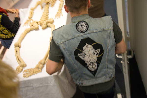 Brot wird in Form der Knochen eines menschlichen Skeletts dargereicht.