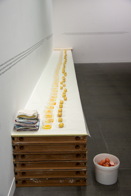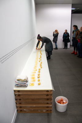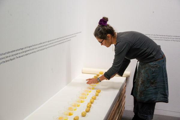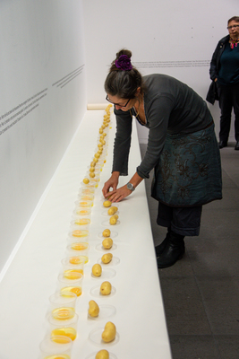 Objekte aus Lebensmitteln werden für einige Stunden als Artefakte im Museum ausgestellt und anschliessend dem Kochprozess hingegeben. Die transformierten Objekte werden gegessen und im menschlichen Körper archiviert.