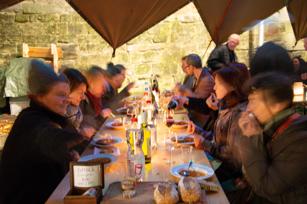 Mit der Buchstabensuppe, welche zum Schluss gereicht wird, liessen sich alle Vorträge und Texte des Symposiums schreiben. Durch das gemeinsame essen der Suppe wird der gesamte Inhalt der Tagung im Körper der einzelnen Teilnehmer_innen archiviert.