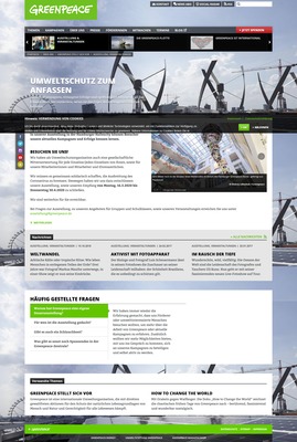 Im Fokus steht unter anderem der Schutz der Meere und der Einsatz von Greenpeace gegen Plastik in den Ozeanen – schon von weitem sichtbar an einem elf Meter hohen Strudel aus Plastikmüll, der von der Decke des Atriums hängt.