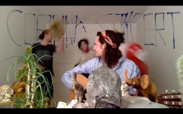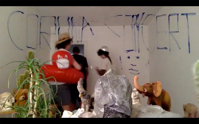 Gabriel Kessler performs a poetic Corona-Concert at his home in Luzern. In the beginning of the performance he paints the letters "corona-concert"  with blue color in Anamorphosis  on the walls of his room. Then he sits down and begins to play guitar and starts singing "stay homaaa if you don't want the coronaaa". The room is decorated with plants, stones, a skull and a teddy bear. During the second song Gabriel puts an eagle and an elephant on the scene. After the third song which is a jodeling song four people enter the room and dance in the background of the room to the last song. After some wild dancing everyone leaves trough the door.