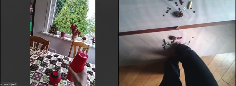 We understood that the task is not to know what the other is doing, nor to watch while performing what the other is doing. Only to have the same materials in the same space.