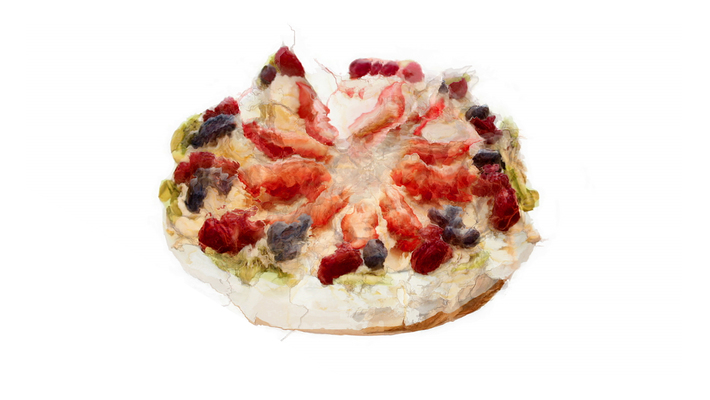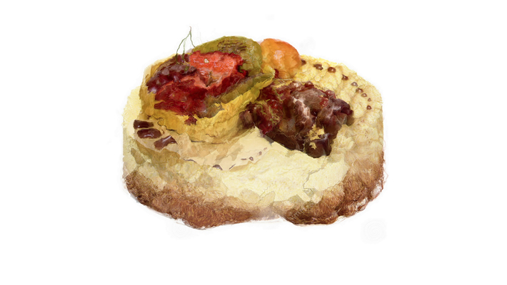 In his work The Ugly Sweet, Dirk Koy plays with juxtapositions. This becomes particularly clear in the technical realisation of the work, as well as in the use of the medium and the various materialities of the subject. The concept may seem quite simple: the video shows cakes in front of a white background, which melt and merge into each other. Only on closer inspection do the juxtapositions reveal themselves, both in terms of technology and content, making this work especially fascinating. The video was made using photographs of various cakes. Koy challenges the technical medium and transforms the rigid photos into dynamic moving images. This approach reflects his interest in materiality – both of the cakes themselves and the images of them, and especially in the merging of these two elements. Koy himself describes this process as follows: ‘I was interested in reacting digitally to the physical materiality of the cakes. this is how a fusion of real and artificially manipulated materiality was created. digital cake kneading. an interaction of objectivity and abstraction, attraction and repulsion’ (email from Dirk Koy to Lea Sigmund, 02.10.20). The video also shows interesting juxtapositions compositionally. At first glance, there is a strong contrast between the neutral, white background and the colourful, artistically crafted cakes, which emphasises the materiality of the cakes. The cakes themselves trigger very contrary associations throughout the video. In the frames when the cakes are clearly visible, we associate them with sweetness, a form of pleasure, perhaps even with positive memories from our own life. The visual language is reminiscent of advertising shots, which emphasise the appeal of the depicted object. However, in the moment of metamorphosis, the transition between one cake and the other – when neither of the two is recognizable – the images cannot be clearly defined by the viewer. Sometimes they even create an unappetizing, repulsive, almost disgusting impression. Although they are recognisable as organic matter, they fuse into an indefinable mass. The beautiful picture melts away. The rapid change of the video between these phases does not allow the viewer to come to rest, but always oscillates between different worlds of feelings and impressions.