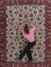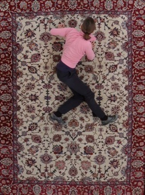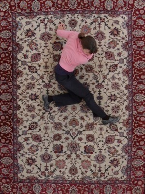 As a child, Edith Hänggi played on a Persian "Sarouk" carpet. In her video she turns it into a stage again, jumps onto it for a brief moment and then back off, performing a slapstick-like climb on its ornaments. Since this kind of carpet was considered a middle-class status symbol during the 1960s, her humorous gestures play on the shift in meanings and values.