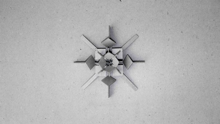 On a grey plane a caleidoscope pulses, made from simple geometric shapes of cardboard as it grows into ever more complex structures. In very rapid rhythms Manuel Szabo forms symmetrical ornamental mandalas, deconstructs them and builds them anew in his animation. In a time where abstract shapes can easily be created through computer simulations, he uses seemingly simple material. Szabo builds the structures by hand, without digital technology and takes them further into a growing complexity. This playful dynamic is intensified through the movement of the camera. The title "Nr. 4" is a hint by Szabo to the symmetry of the construction, which always contains a number of cardboard shapes which is always a multiple of 4. The work shows an immense visual variety and aesthetic in a spectrum grey. The effect that Manuel Szabo creates shifts between psychedelic and overwhelming; however the piece retains its playful character.